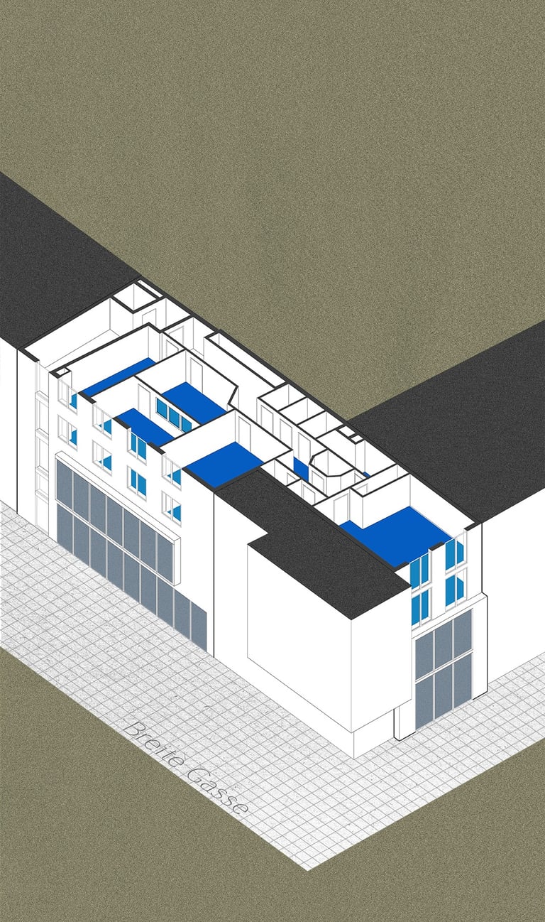 In unserem neuen Projekt hauchen wir zwei leerstehenden Büroetagen mit 9 funktionalen Kleinwohnungen neues Leben ein. Obwohl die Breite Gasse zunehmend von Leerstand geprägt ist, ist dies ein weiterer kleiner Anstoß zur Transformation der Innenstadt. Die neuen Bewohner bringen Leben in die Fußgängerzone. Auch wenn es nur ein kleiner Dominostein im großen Komplex einer Großstadt ist, hoffen wir, dass dies zur Verbesserung der Lebensqualität beiträgt. Wenn dann die großen Dominosteine wie Kaufhof und Citypoint fallen, steht einer lebenswerten Stadt mit belebten Erdgeschossen und vielfältigem Wohnangebot in den Geschossen nichts mehr im Wege.