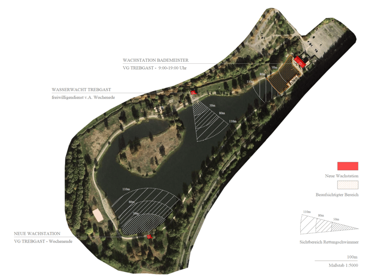 - Analyse der verschiedenen Schwimmbereiche, Uferbereiche, Blickwinkel und Strömungen